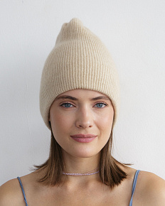 Шапка кашемировая двойная бежевая