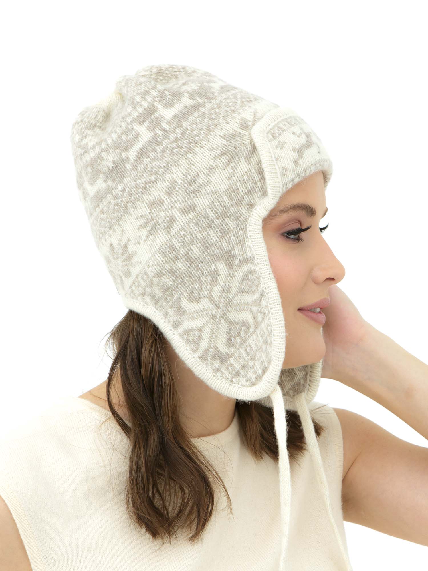 Ушанка из шерсти 5K10022 бежевая