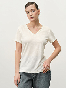 Короткий рукав, аккуратная обработка выреза, мягкая фактура ткани, ровные швы, комфортная посадка.