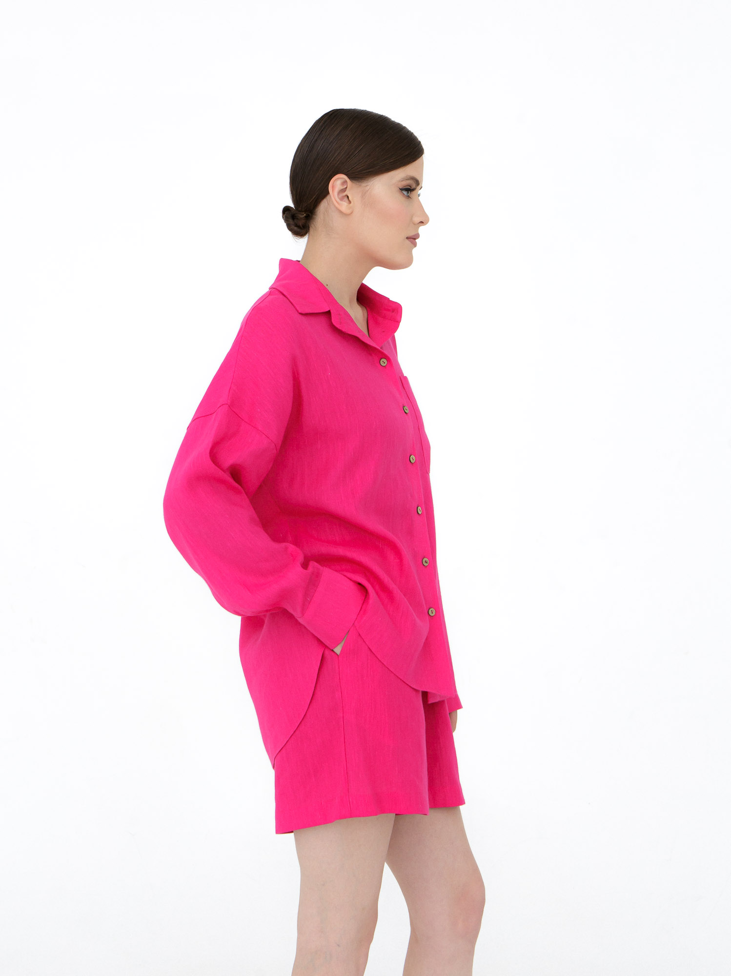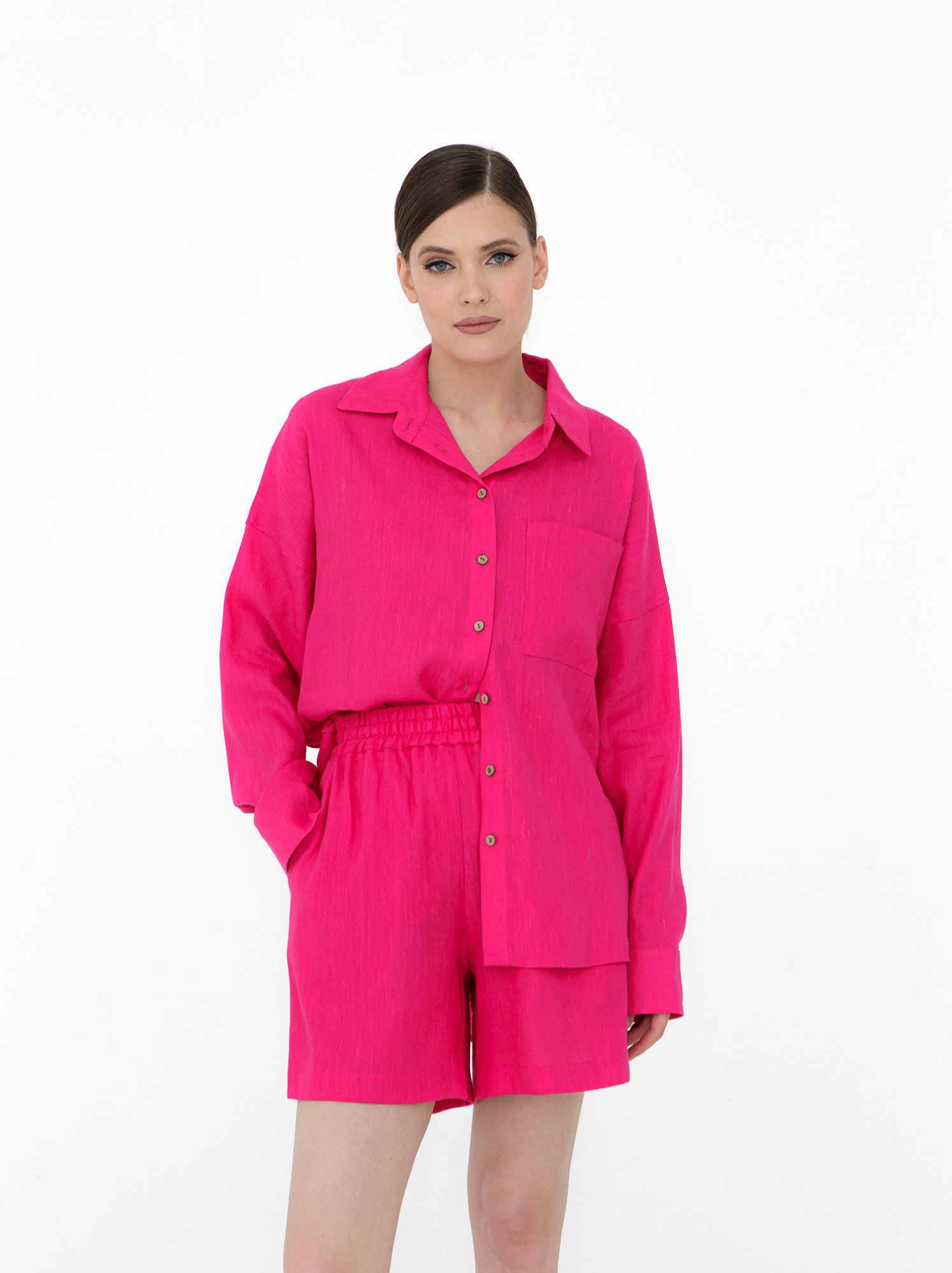 Костюм льняной с шортами 7729 фуксия