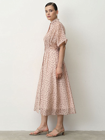 Свободный силуэт с акцентом на талии и длиной миди. Легкие рукава и плавные линии создают воздушный и элегантный образ.