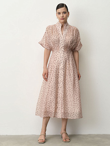 Платье из тенселя 90501 пудровое в горошек
