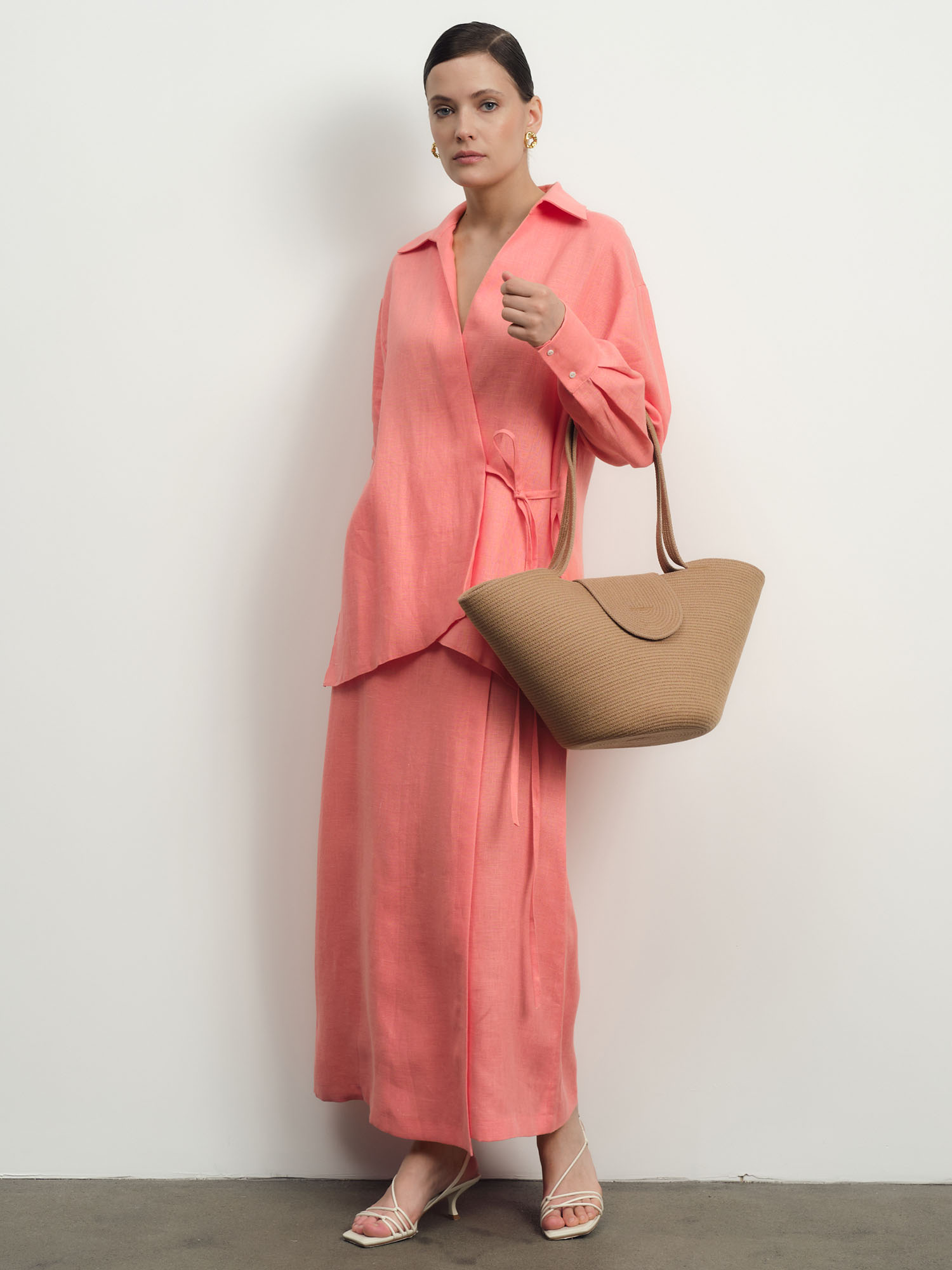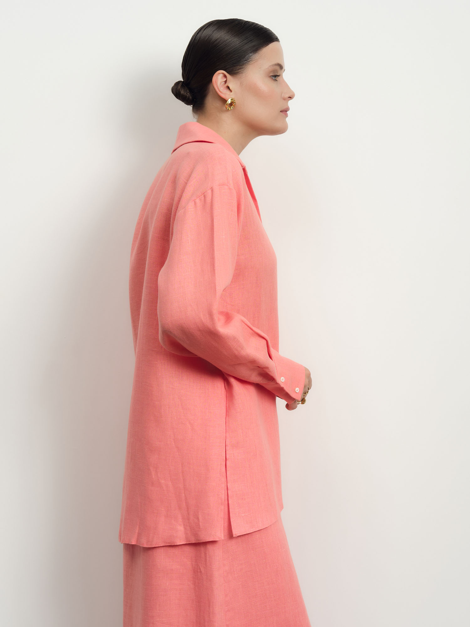 Льняная рубашка — стильная и выразительная модель с современным асимметричным кроем. Идеально подходит для теплого сезона и создания ярких, актуальных образов.