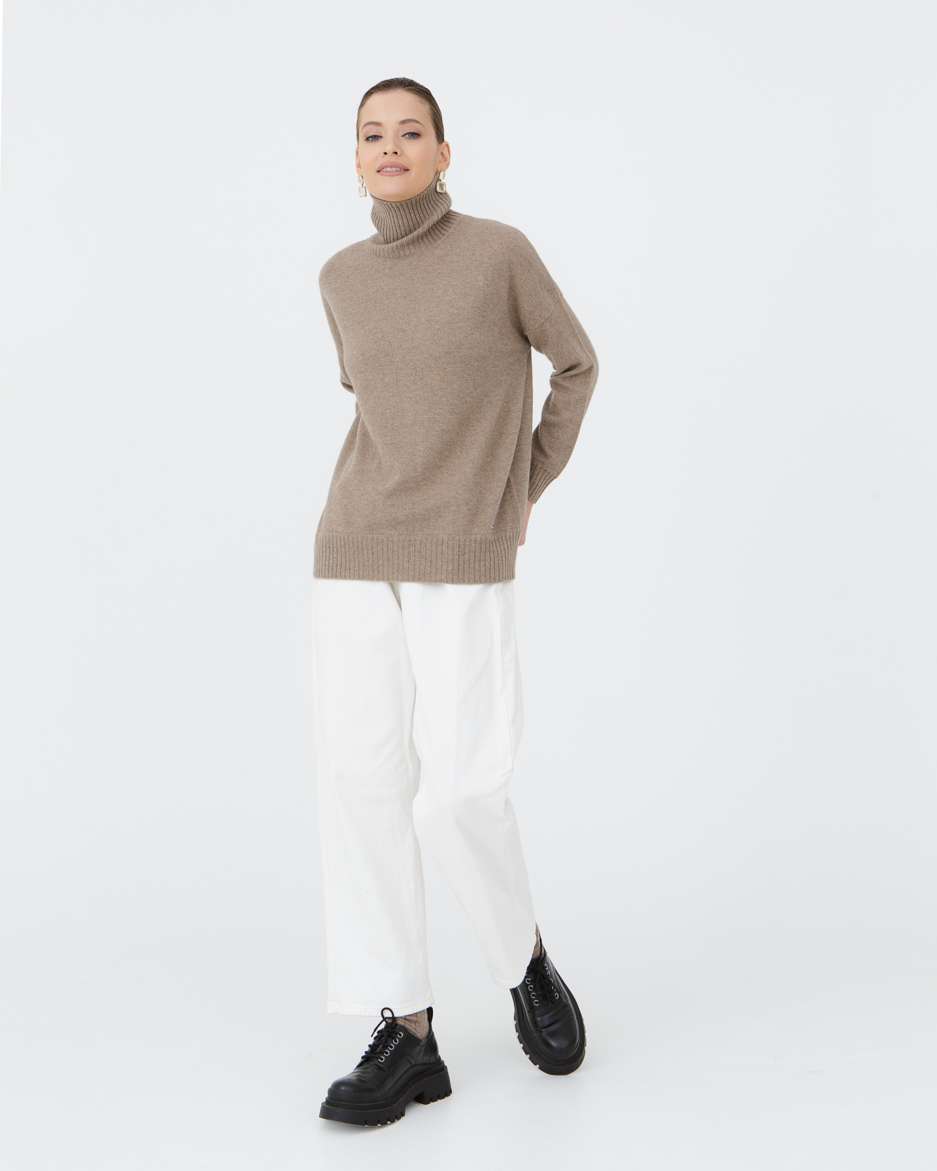 Свободный прямой силуэт обеспечивает комфортную посадку и свободу движений. Мягкий кашемир приятно прилегает к телу и дарит ощущение лёгкого тепла.