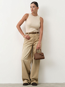 Минималистичный дизайн без рукавов с аккуратной круглой горловиной. Эластичная вязка по краю горловины и по низу изделия сохраняет форму и подчёркивает аккуратность силуэта.