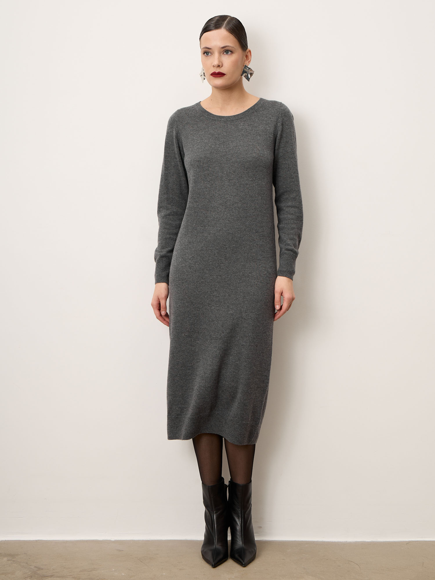 Платье из кашемира 9065а темно-серое