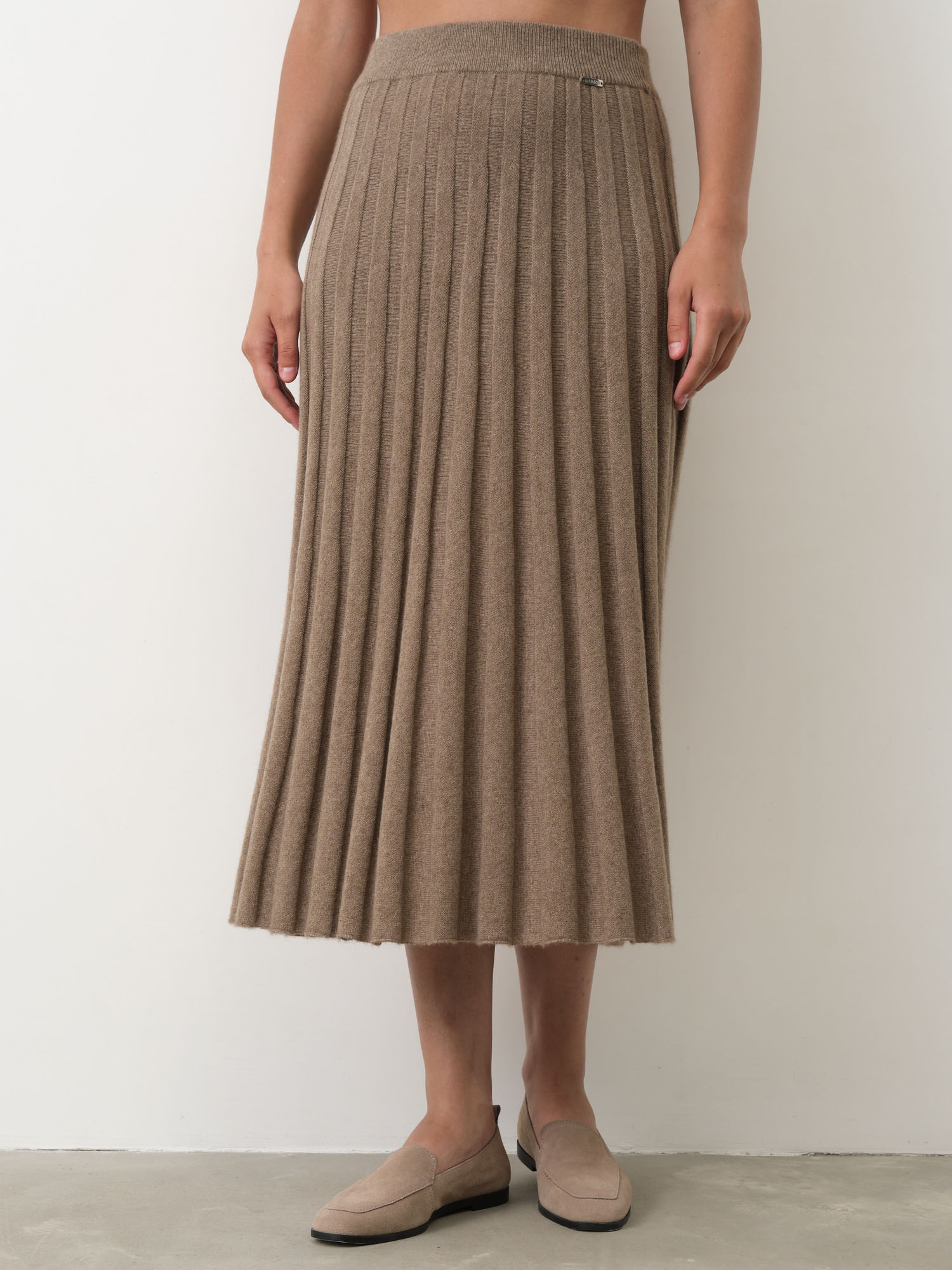 Юбка из кашемира — элегантная и женственная модель с плиссированной фактурой, которая красиво движется при ходьбе и придаёт образу лёгкость. Подходит для повседневных и более утончённых образов, легко сочетается с джемперами, водолазками и блузами.